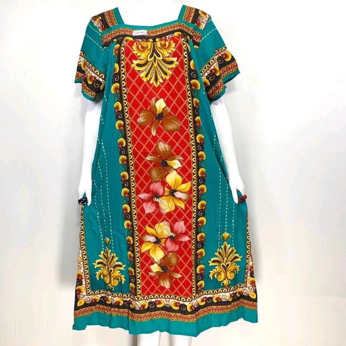 Daster Sikak kancing LD 120 DASTER SRIGADING BUNGA RANTAI - merah