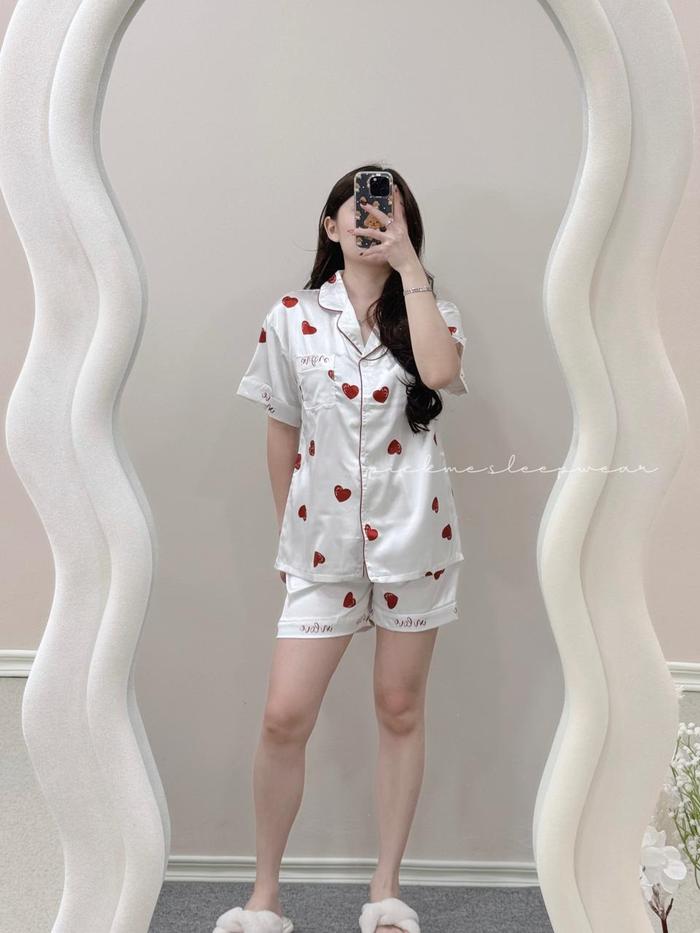 [PickMe] #A24 Baju tidur lengan pendek stelan oneset wanita baju tidur satin lengan pendek - XXL