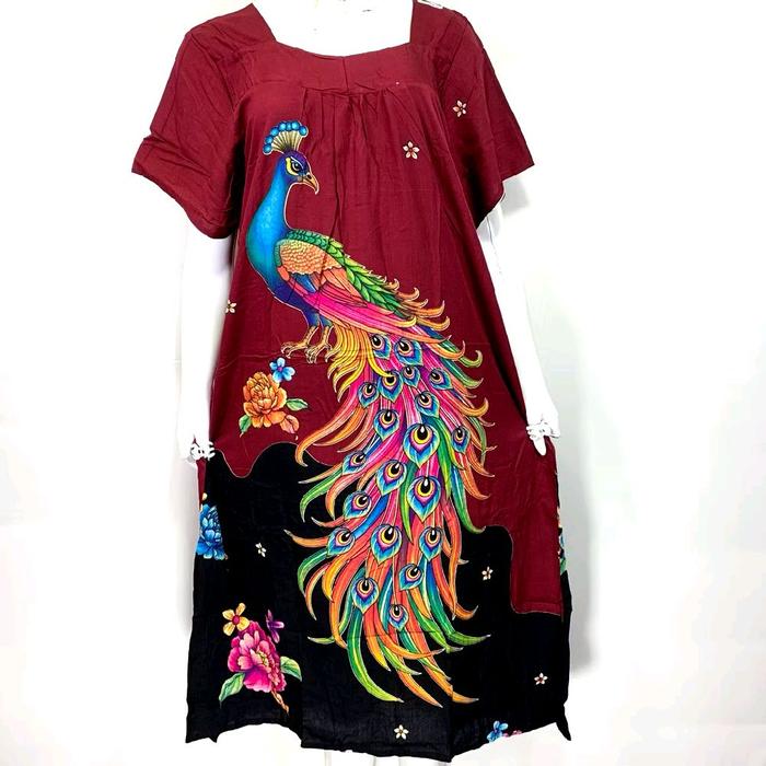 DASTER BATIK Rayon SRIGADING LD 120 MOTIF BURUNG - merah