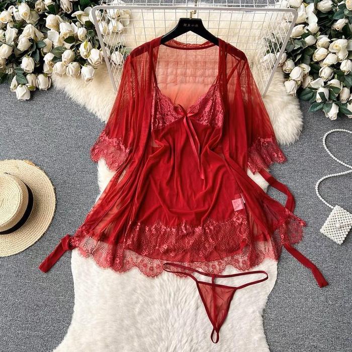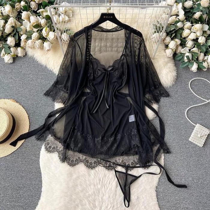 Yipao 901 Kimono Dress 2in1 Baju Tidur Dinas Malam Wanita Dewasa Piyama Satin - Hitam Bigsize BB 63-80KG