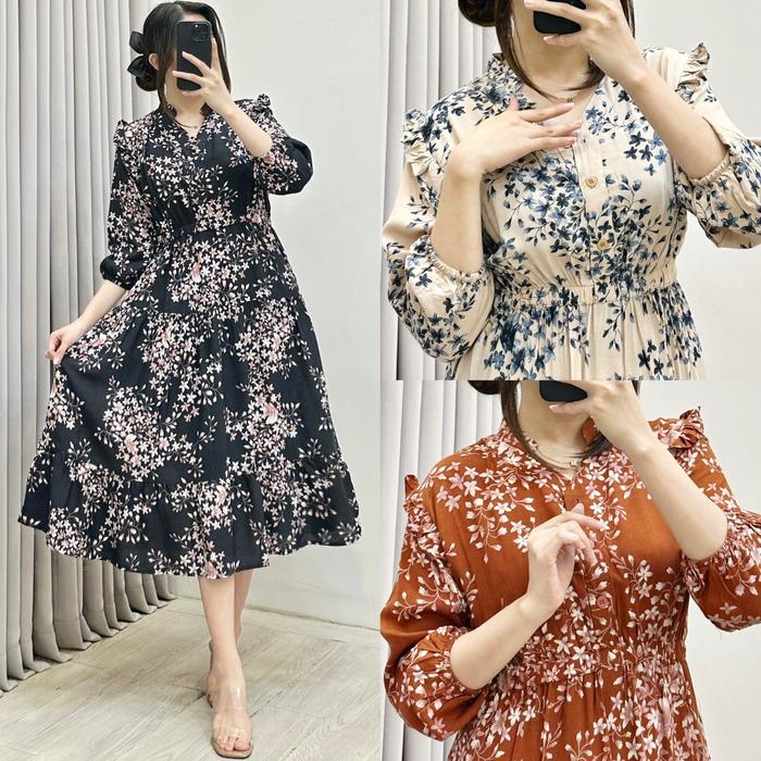 Amariel Kinsi Dress Daster Nyaman Kancing Busui Bumil Friendly - Katun Rayon Viscose Motif - Kin: Polka Cream