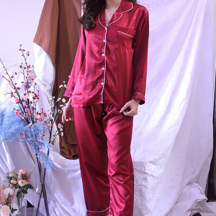 Zavyn Setelan Piyama Satin Wanita PP Long Sleeve - Navy L
