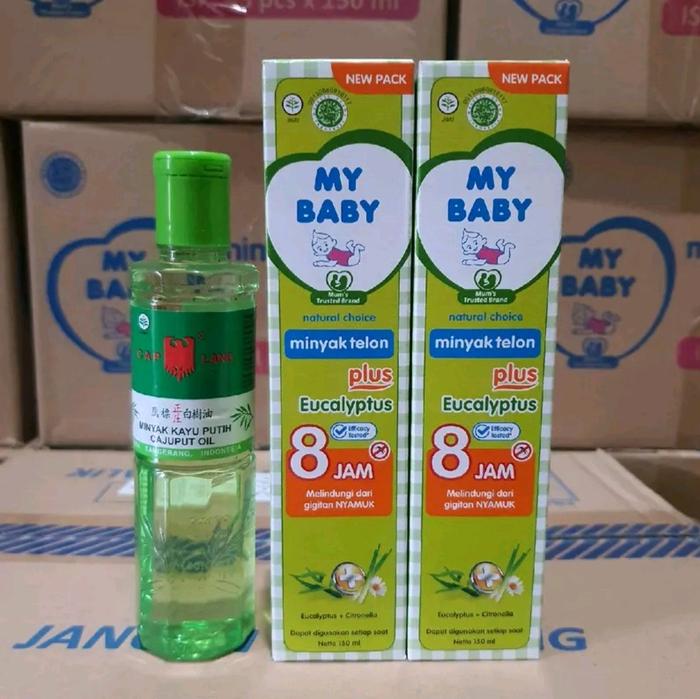 Minyak Kayu Putih 120ml + 2 Minyak Telon 150ml - Kayu putih 120ml+ 2pcs telon my baby eucalyptus