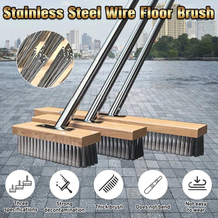 Sikat Gosok Lantai Kawat Baja Tahan Karat dengan Pegangan Sikat Bulu Kaku untuk Taman Sapu lumut - 45CM