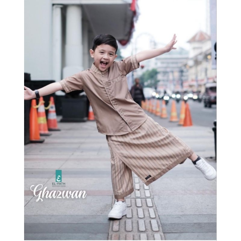 PROMO Setelan Baju Koko Anak Laki-laki Sarung Celana Ghazwan Original by El-Fath || Koko Lengan Pendek Usia 2-12 Thn