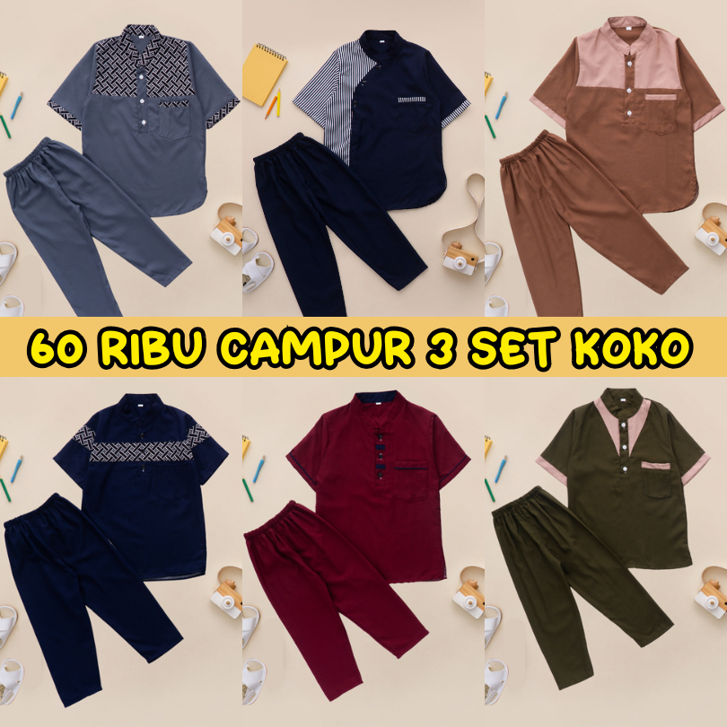 PROMO Paket 3 Set Koko Anak Usia 1-10 Tahun Campur Model