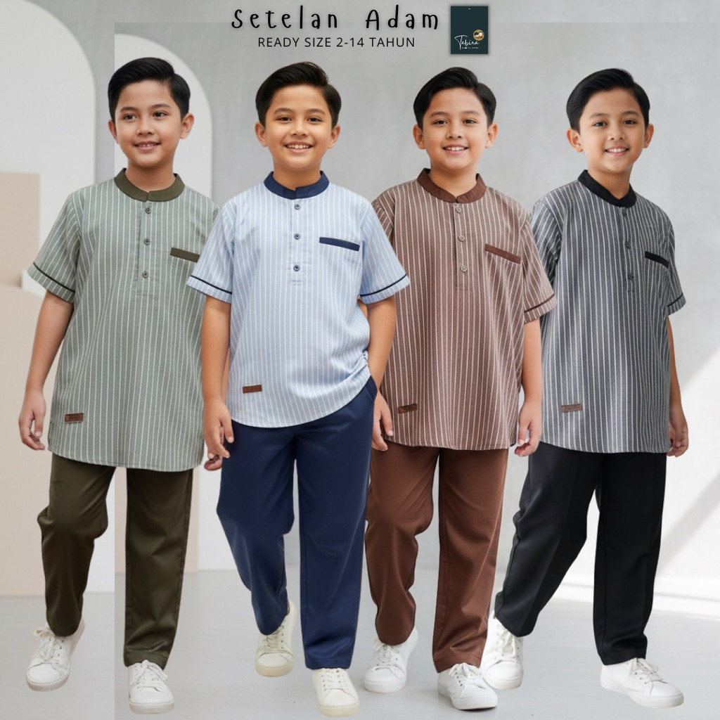 PROMO Setelan Kurta Lengan Pendek Anak Laki Laki sampai Remaja Tabina Seri Adam usia 2 hingga 14 tahun