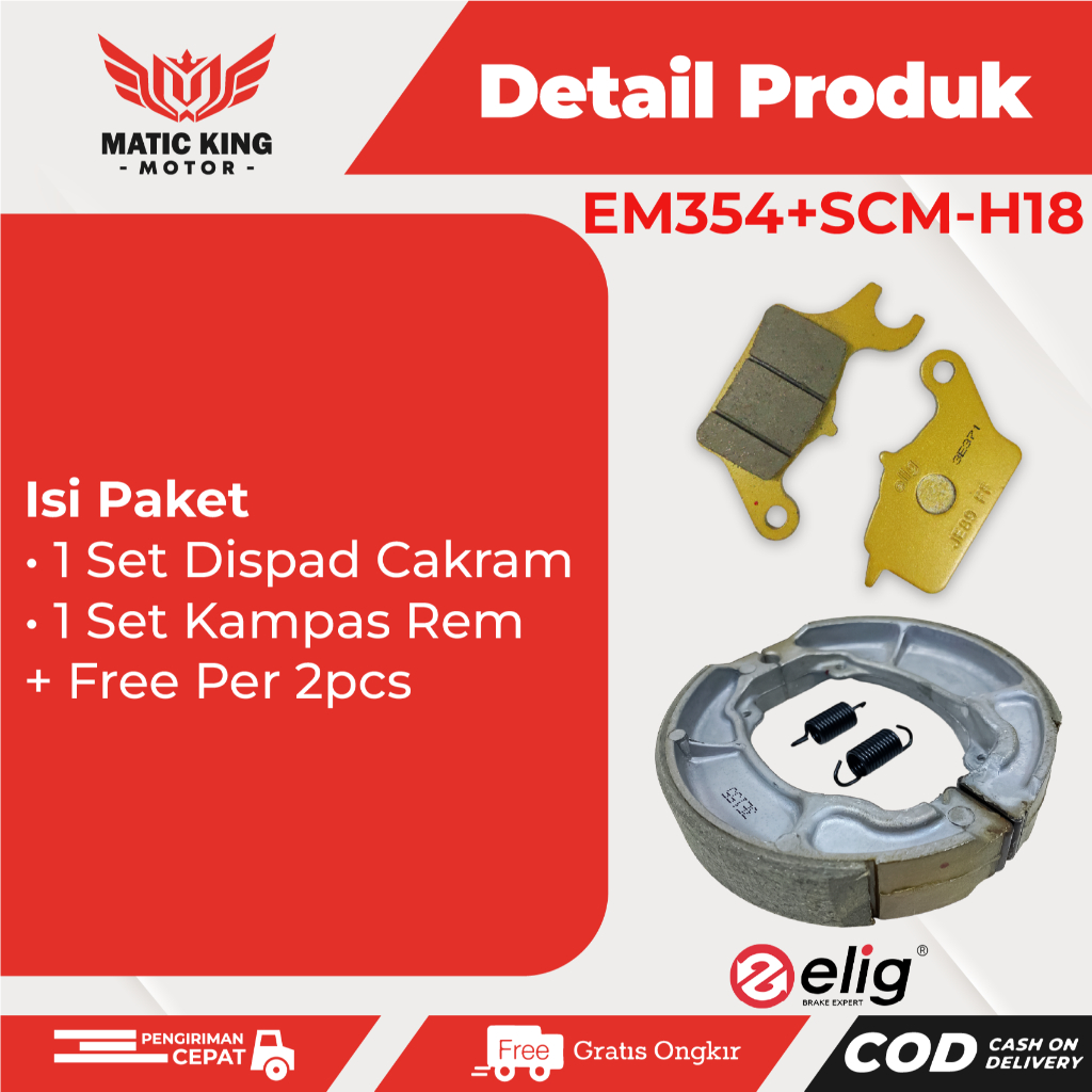 ELIG Paket Kampas Rem Dispad Discpad Depan Belakang Beat Vario Scoopy Spacy Karbu Fi eSP Deluxe Street New Led Techno 110 125 150 EM354 SCM H18