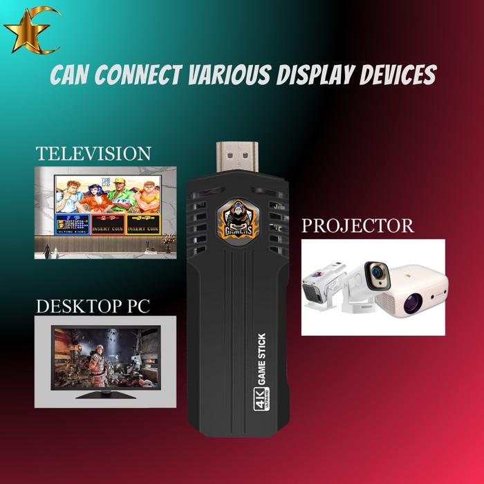 S Moon 120P Game Stick - 40.000+ Games - Kontroler Kabel & Nirkabel - Model Game 120P - Output Hdmi 4K - Memori 64Gb -