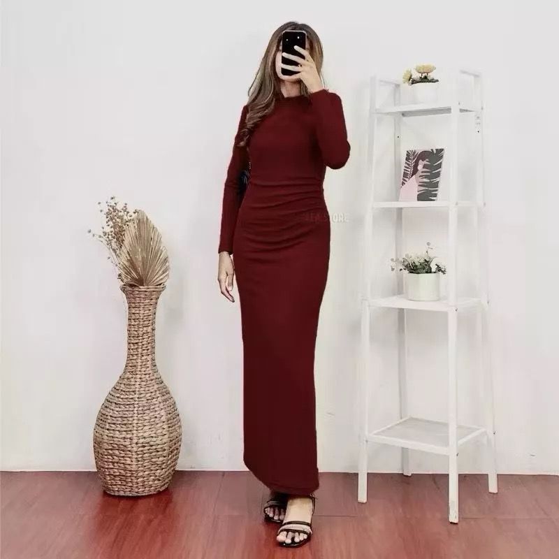 ORINA DRESS KNIT PREMIUM BASIC KNIT SLIM - DRES KOREAN STYLE LONG DRESS KOREA - DRESS PANJANG WANITA RIB KNIT - DRESS WANITA TERBARU