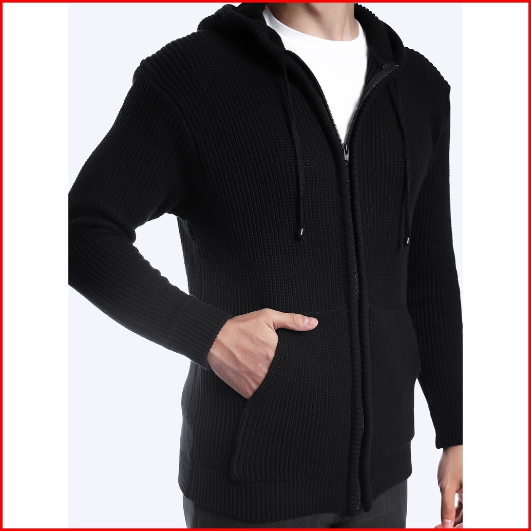 Gomuda Hoodie Rajut Full Zip - Black