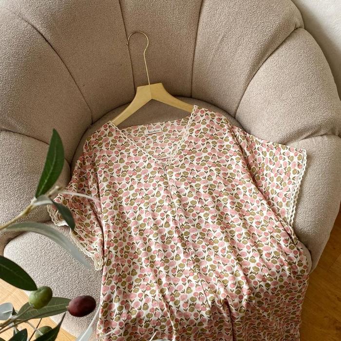 Koncoturuu | Kumala Daster | Daster motif lengan pendek bigsize | sleting busui dan kantong - Dreamy