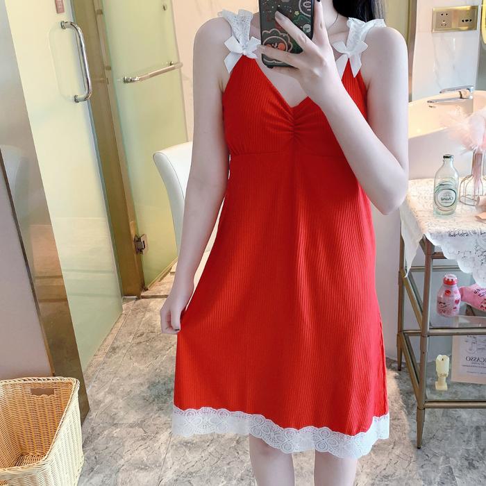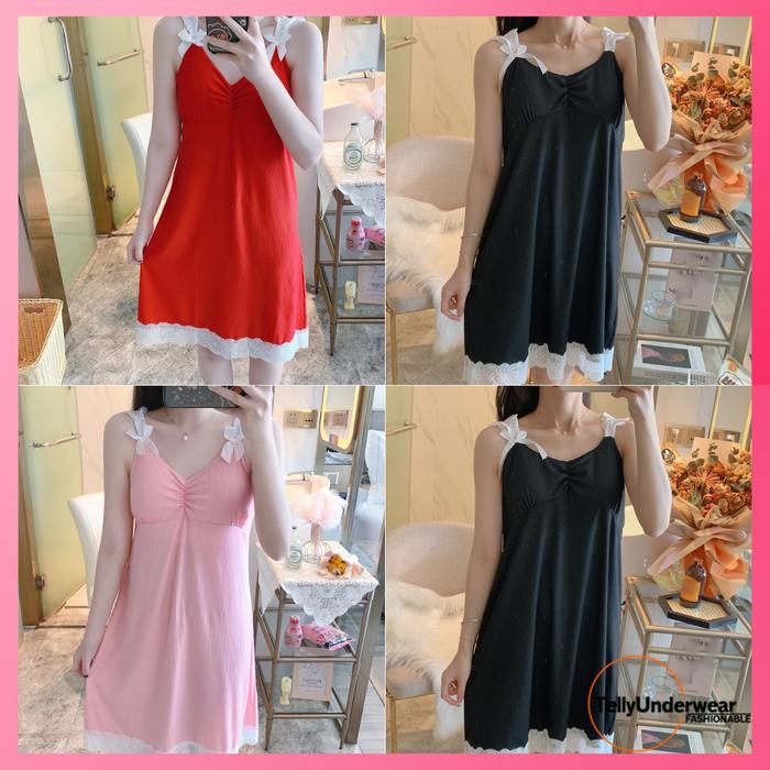 TELLY 265 Pakaian Baju Wanita Tidur Daster | Motif Pita Nyaman dan Lucu Dress Panjang - HIJAU