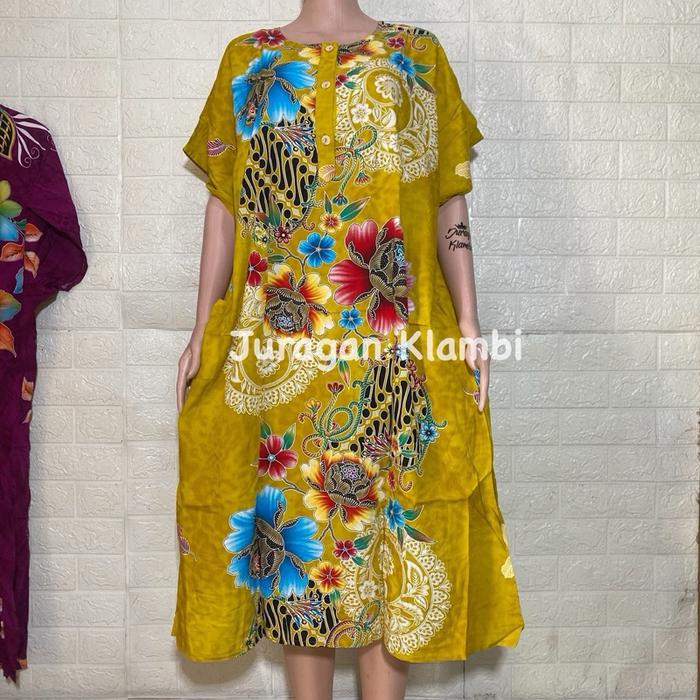 Daster L3 Lengan Langsung LD 130 Kencana Ungu label Biru Busui Dress Kancing Batik Ibu Motif Nyaman - Motif 1 LD 130