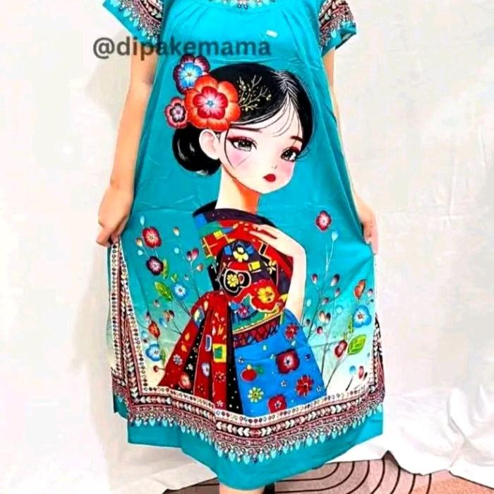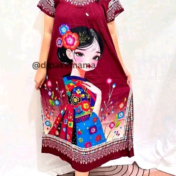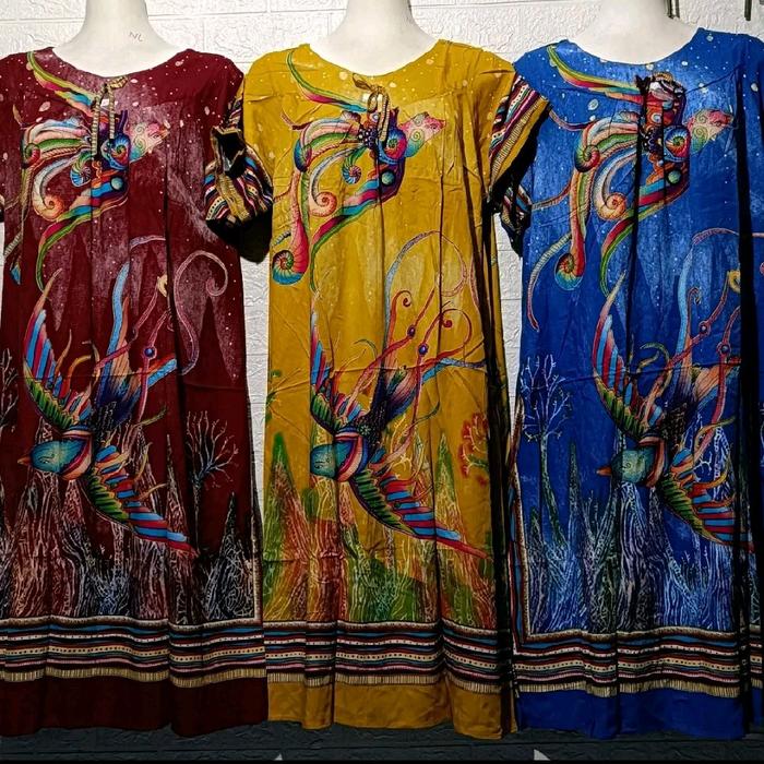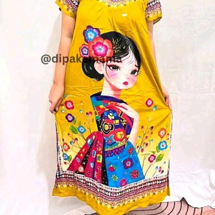Daster Sri Gading Model Bulat Pita Motif LDv120 / Baju Tidur Wanita - kuning