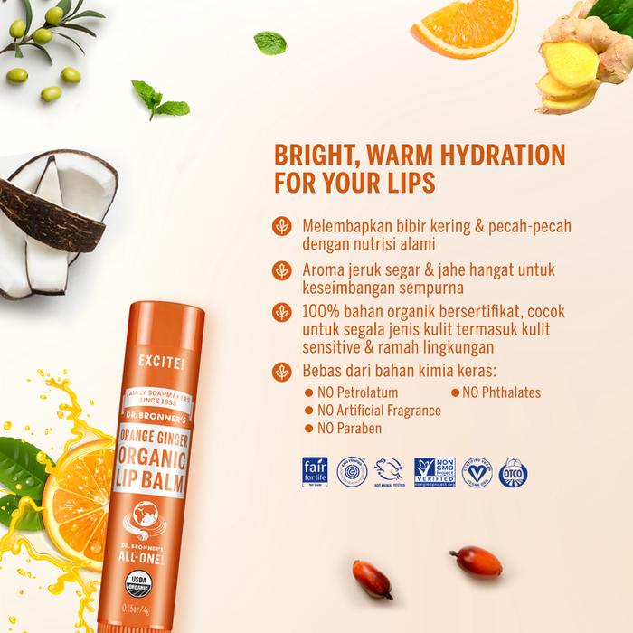 Dr. Bronner's Lip Balm Organik varian Orange Ginger 4 g