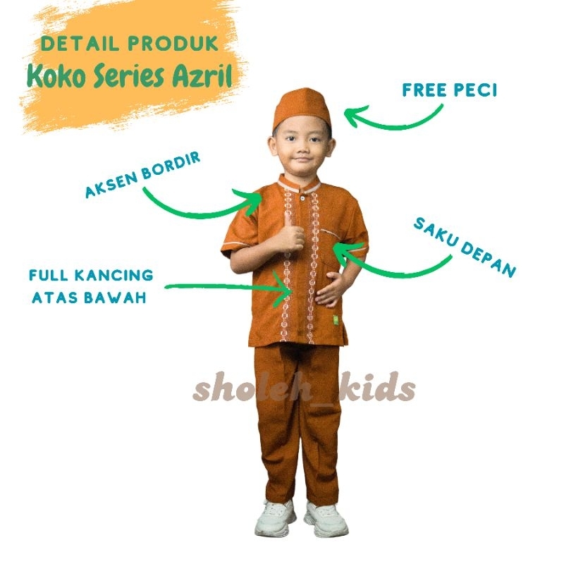 PROMO Sholeh_kids Koko Anak Series Azril Pul Kancing Atas Sampi Bawah Dengan Aksen Bordir Yang Mnenarik