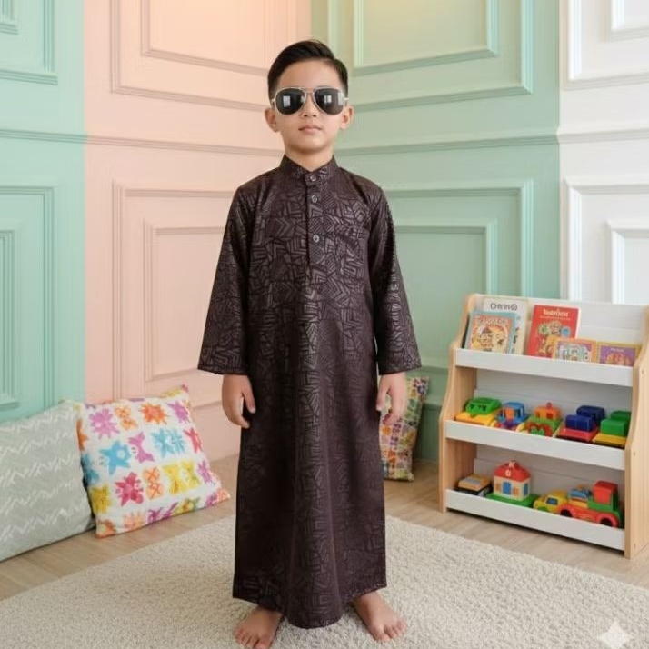 PROMO Baju Koko Jubah Anak Laki Laki 1-15 Tahun Motif Emboss Gamis Elegan