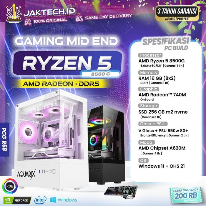 Pc Gaming Ryzen 5 8500G | 16Gb Ddr5 | Ssd M2 Nvme | Komputer Rakitan Live Streaming Design Editing Rendering Jaktech Gar