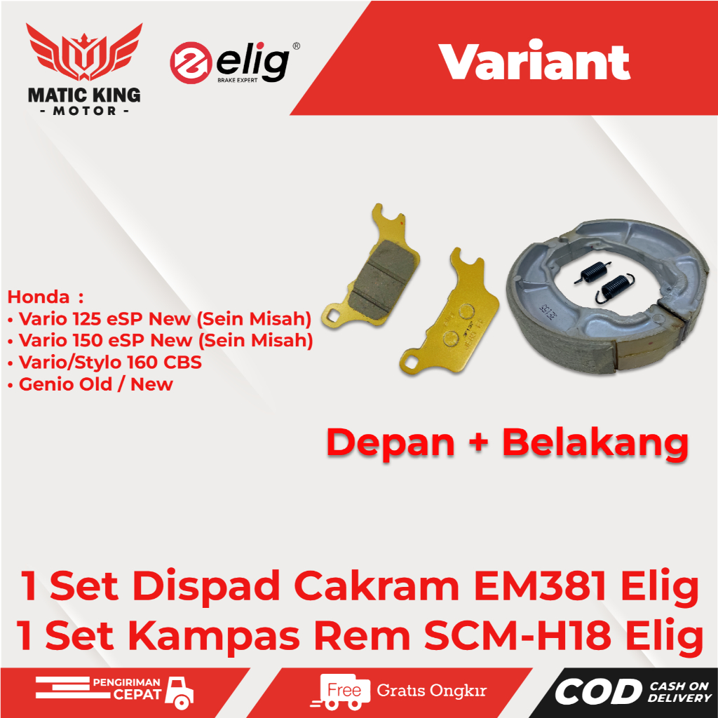 ELIG Paket Kampas Rem Dispad Discpad Depan Belakang Vario Genio Stylo 125 150 160 eSP New CBS EM381 SCM H18
