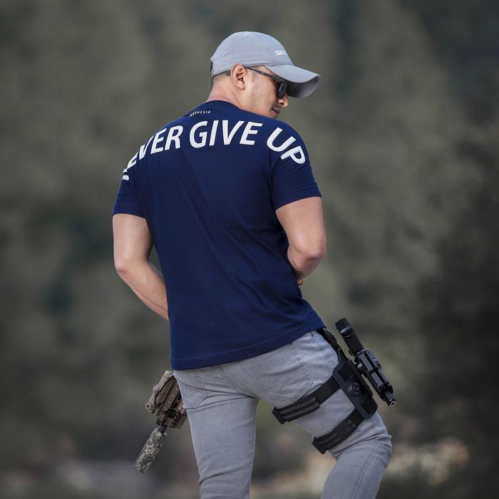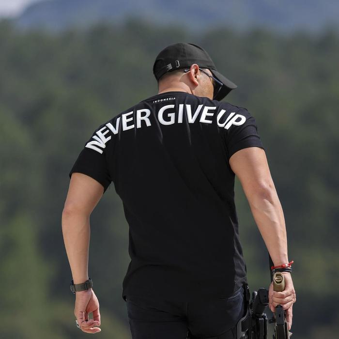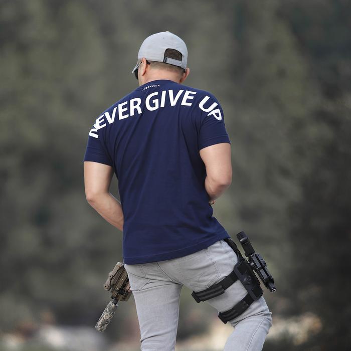 Kaos Pria Never Give Up Kece Cowok Baju Distro Keren Terbaru Diatro Koas Kata Kaosbos.Id - Ngu Black Edit, S