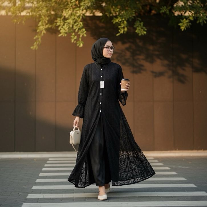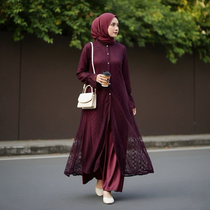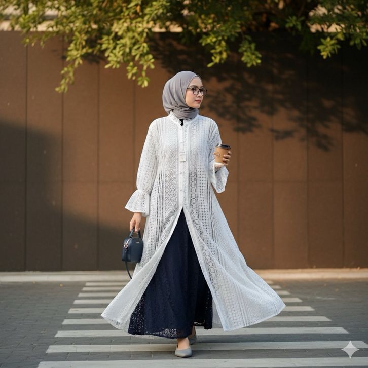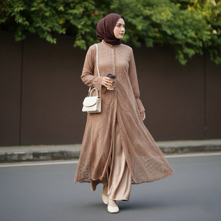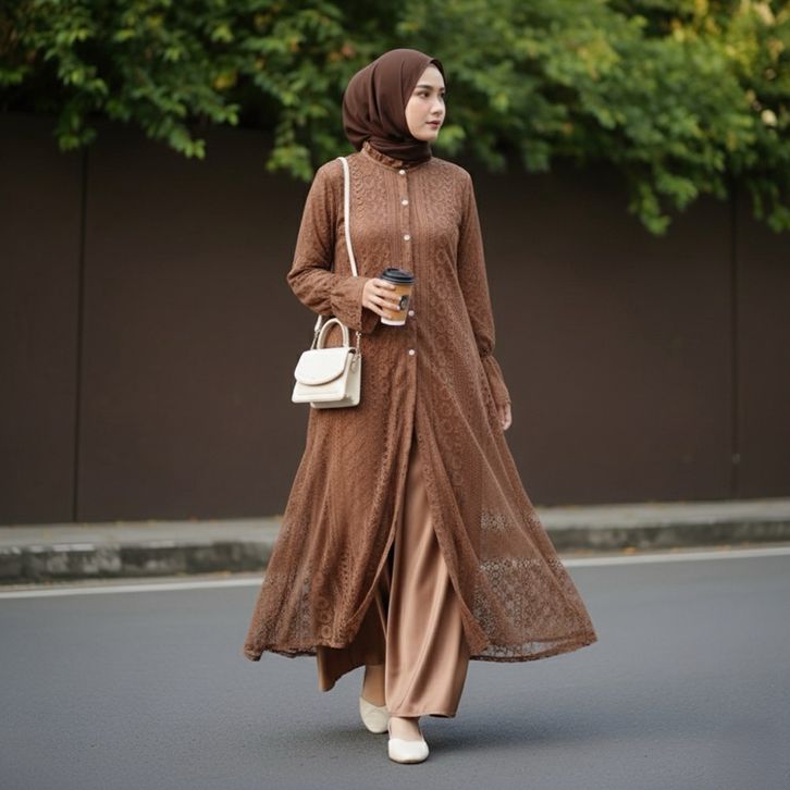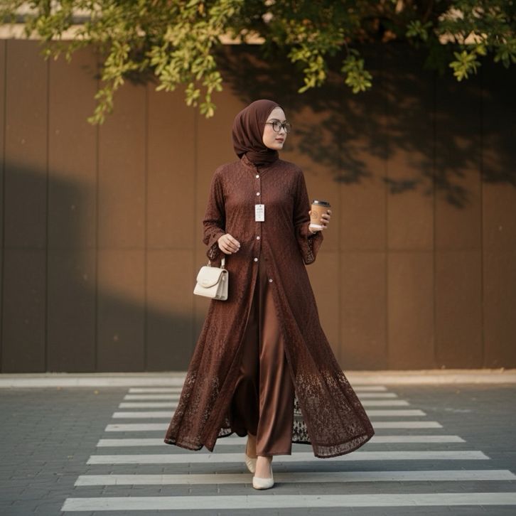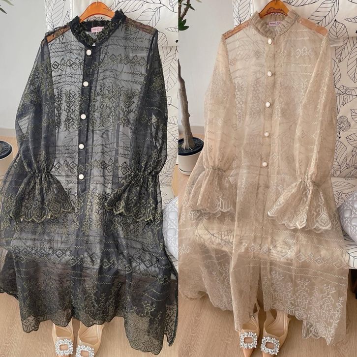 NERISSA Long Tunik Borkat Wanita Jumbo Outer Burkat Cantily - Midi Dress Brukat Lebaran 2026 Crocus