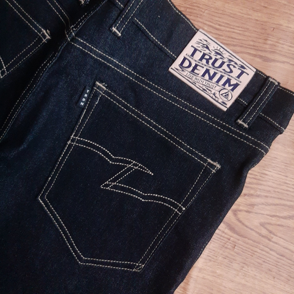 Trust Denim-WOLFGANG V1 - Celana Denim Selvedge Accent Black Indigo Denim 13oz Strech Slimfit cut