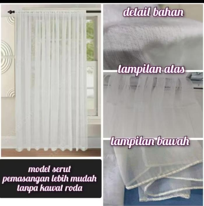 Gorden Putih Vitrase Import Model Serut,Putih Daleman Siang Malam TileAnti Silau Cocok Untuk Jendela Dan Pintu Minimal