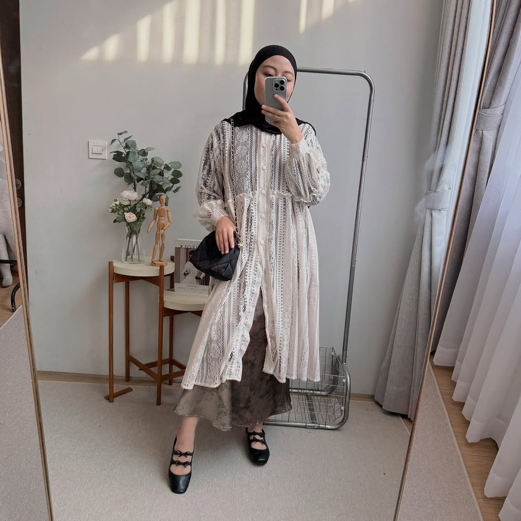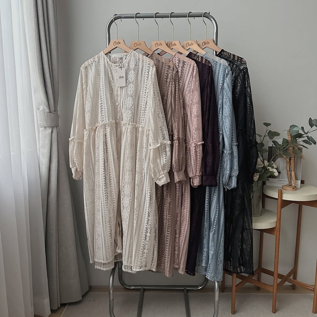 PROMO Oclo Orzasya Long Outer Brocade Lace Atasan Tunik Wanita Brukat Renda Lengan Panjang OCL01068