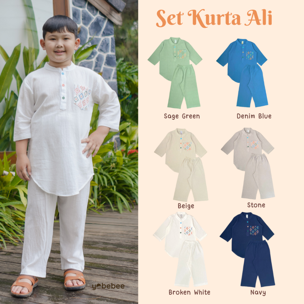 PROMO Yobebee Setelan Kurta Ali Anak Laki Laki Usia 2 3 4 6 8 10 12 Tahun Baju Muslim One Set Koko Eid Raya Series Coupl