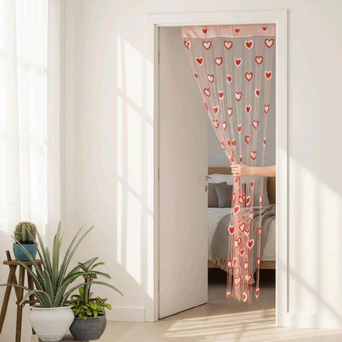 Tirai Benang Love Butterfly String Curtain 100Cmx200Cm Dekorasi Estetik & Manis Untuk Pintu Jendela Rumahmu Q7/1-1 - Lig