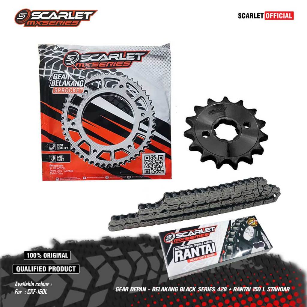 Scarlet Racing - Gear Gir Set Depan Belakang Black Series CRF 428 Plus Rantai Standar 150l