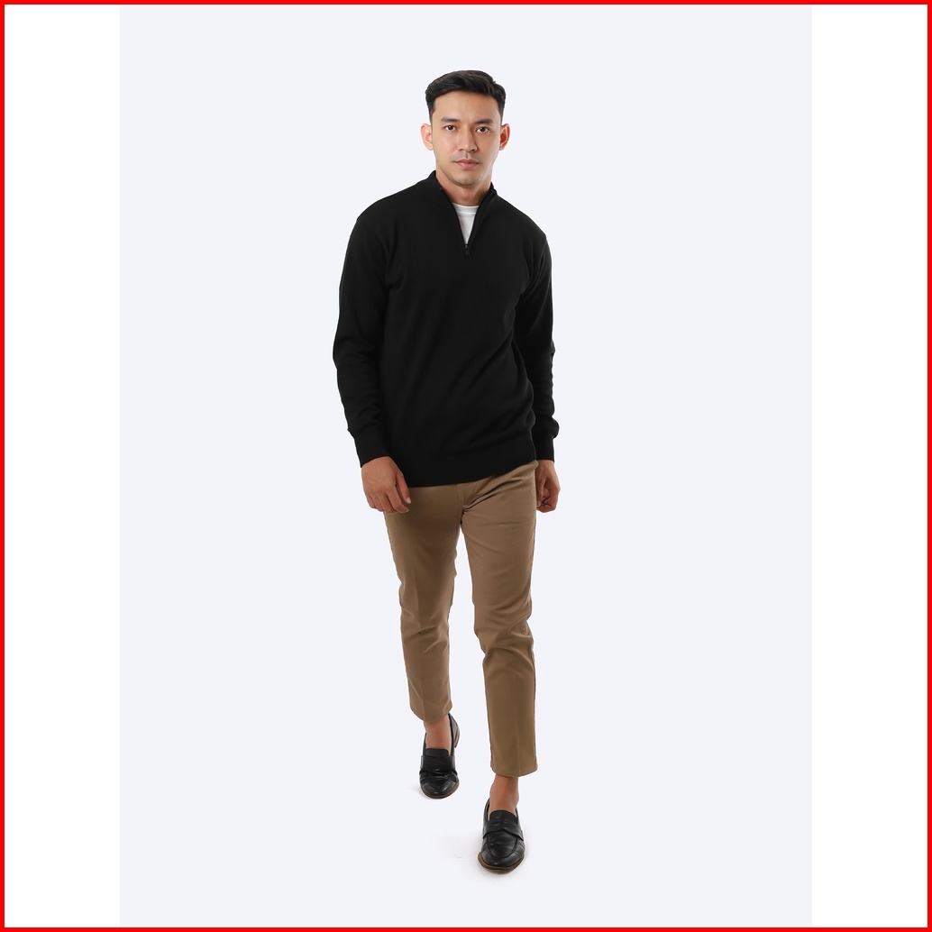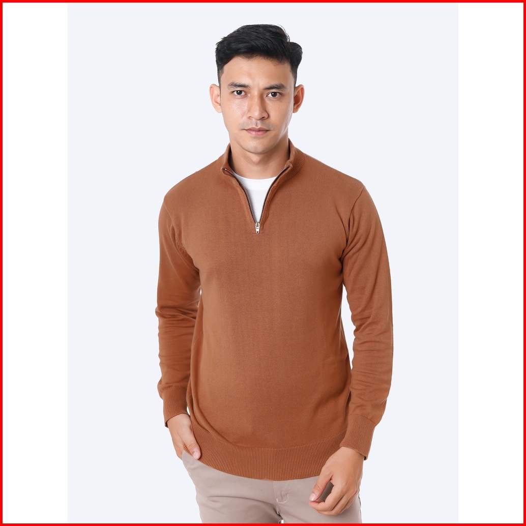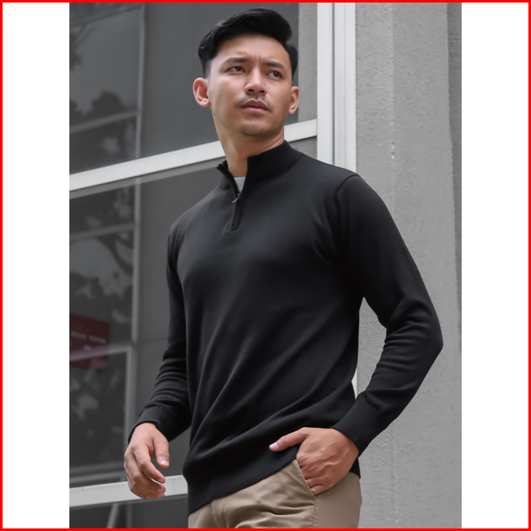 Gomuda Sweater Rajut Pria Mockneck Zip Knitwear