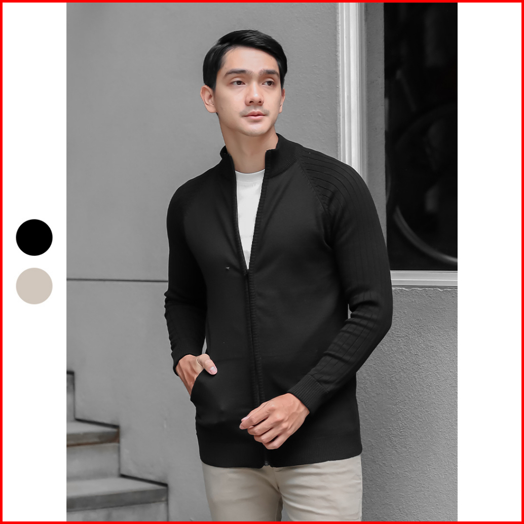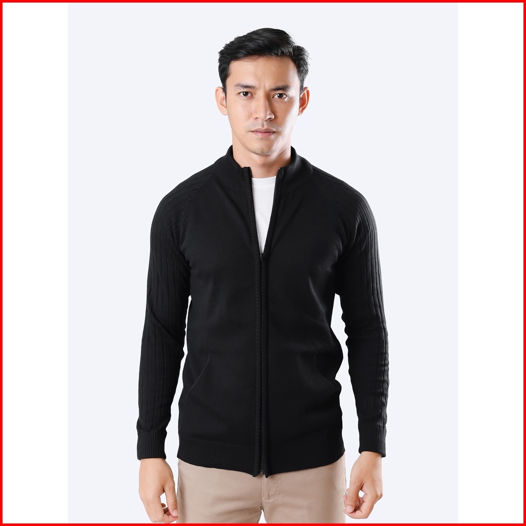 Gomuda Sweater Rajut Pria Sporty Full Zip - Black