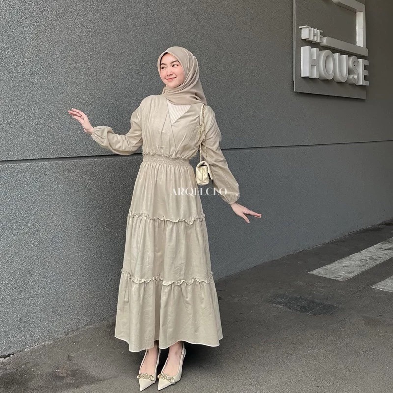 DRESS BORA / DRESS PANJANG RUFFLE KOREAN LOOK HIJAB FRIENDLY
