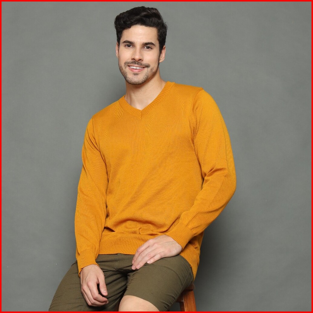 Okechuku Vleur Sweater Rajut Switer Knit Pria Katun Basic Polos Leher V Neck