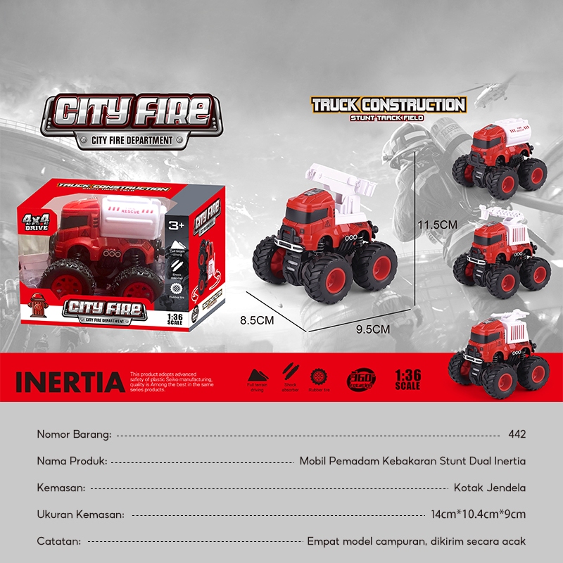 Mainan Anak Mobil Monster Jeep Mobil Bangunan Off Road 1:36 4 Wheel 4x4 Drive 360° / Diecast Mobil 3D DIY RANDOM