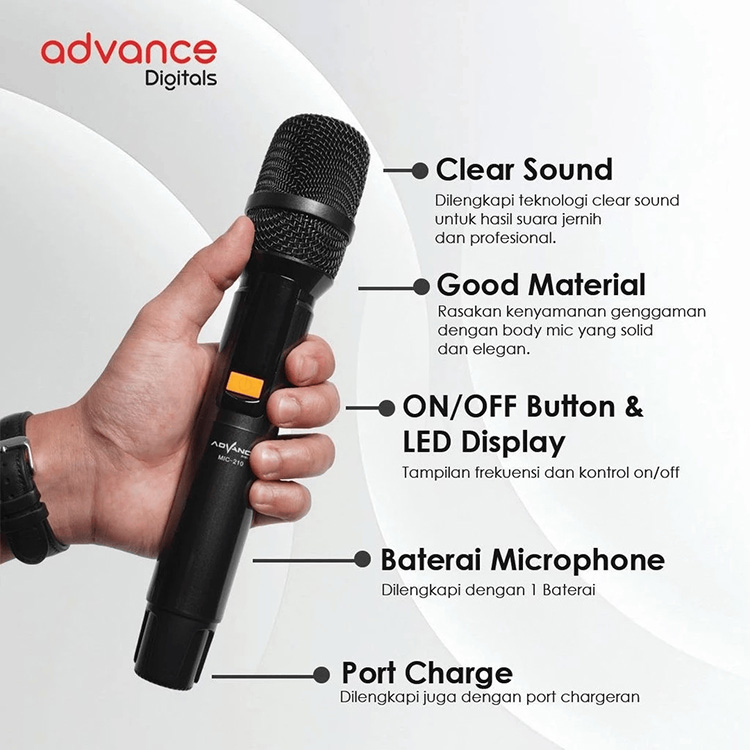 Advance MIC210 Double Mic Wireless Recharger untuk Souncard atau Speaker Garansi Resmi 1 Tahun