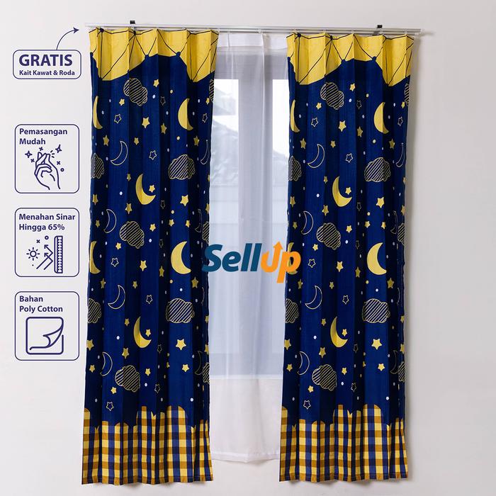 Gorden Plisket Jendela Maupun Pintu Model Cantolan Kawat S Ukuran T100Cm -225Cm - Amanda Navy, T100Cm L100Cm