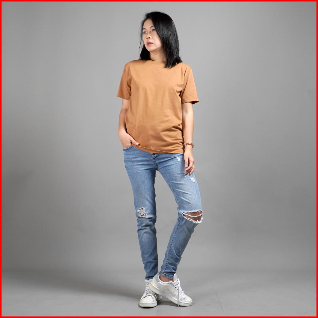 Okechuku Unilo Size S - Big Tshirt Katun Polos Lengan Pendek Kaos - Brown