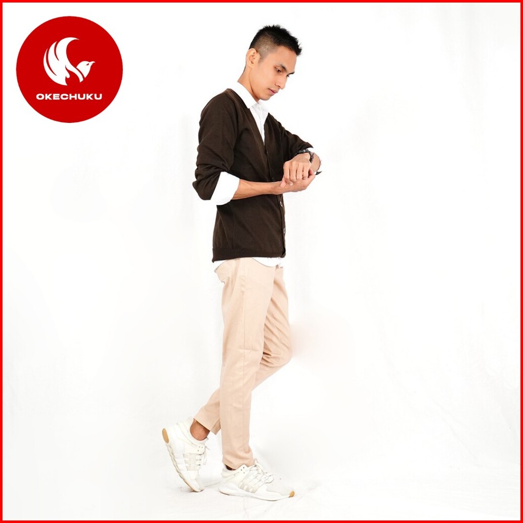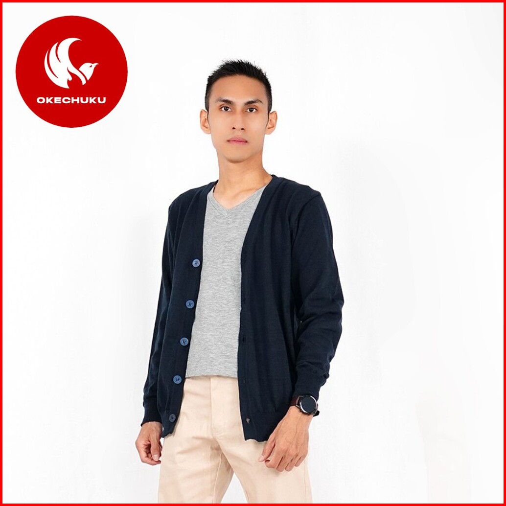 Okechuku Rico - Cardigan Rajut V Neck Fashion Korea Murah Tangan Panjang Leher V