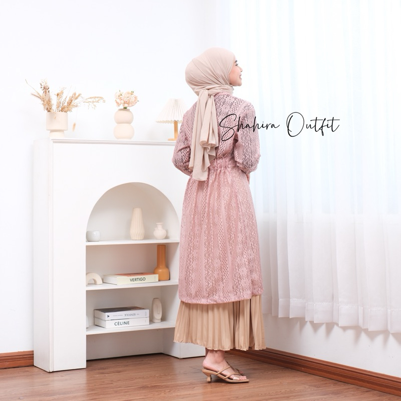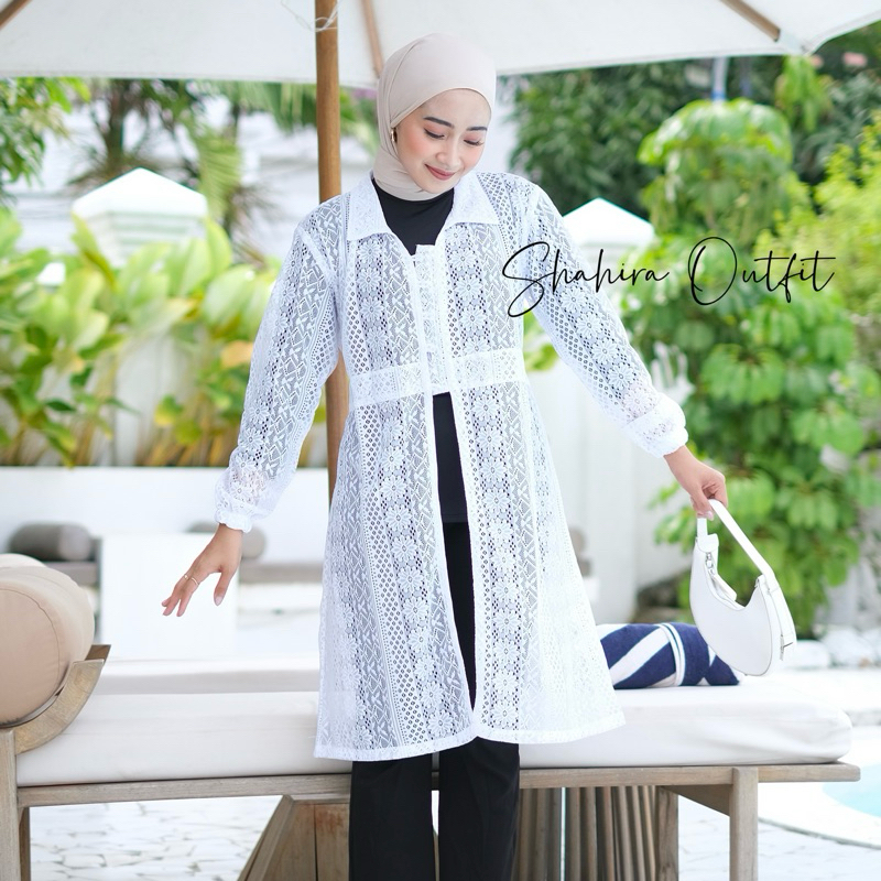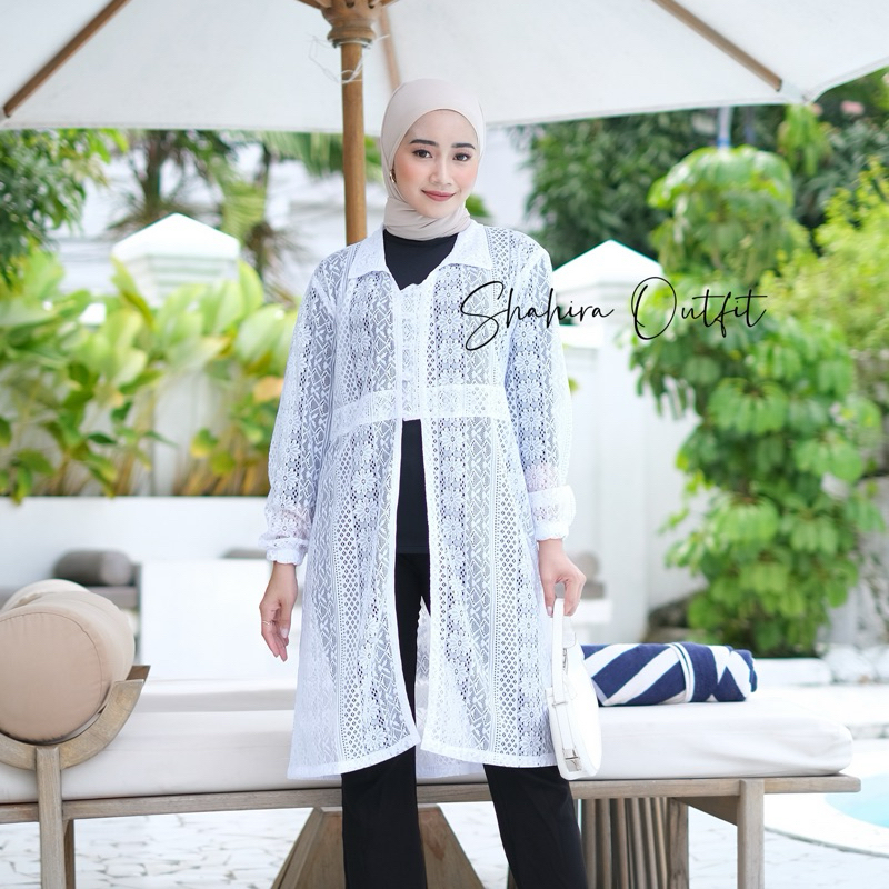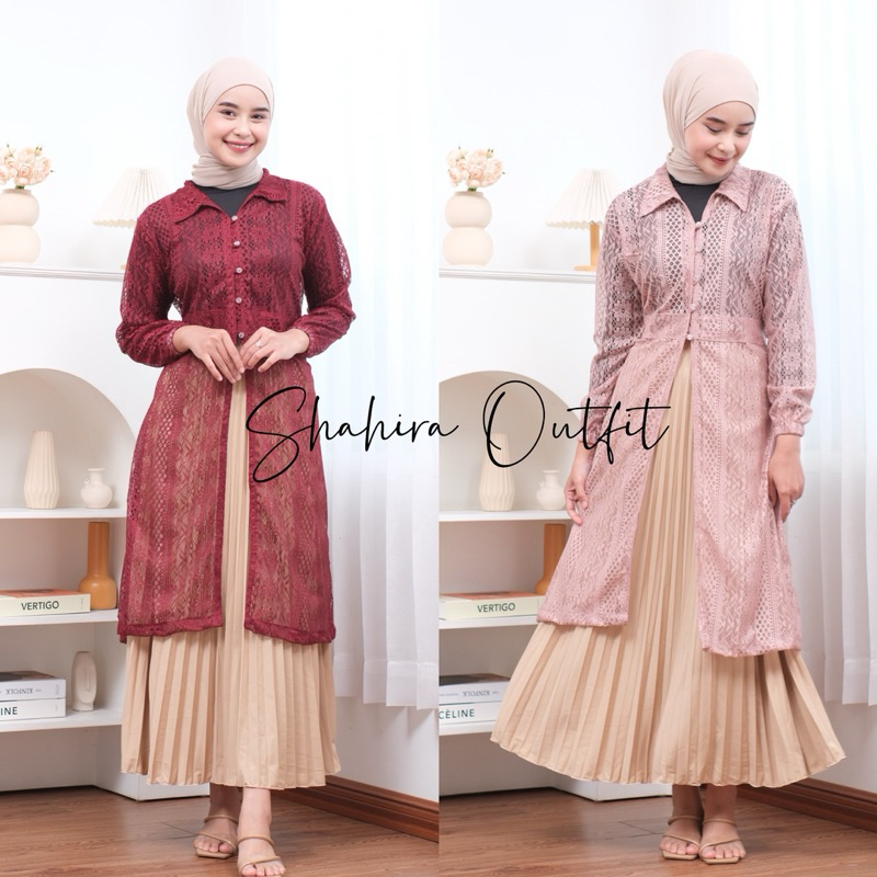 PROMO Raya Outer Lace Premium Tunik Brukat Cardigan Panjang Wanita