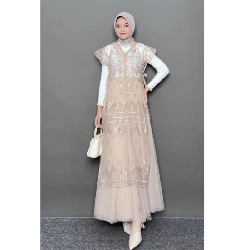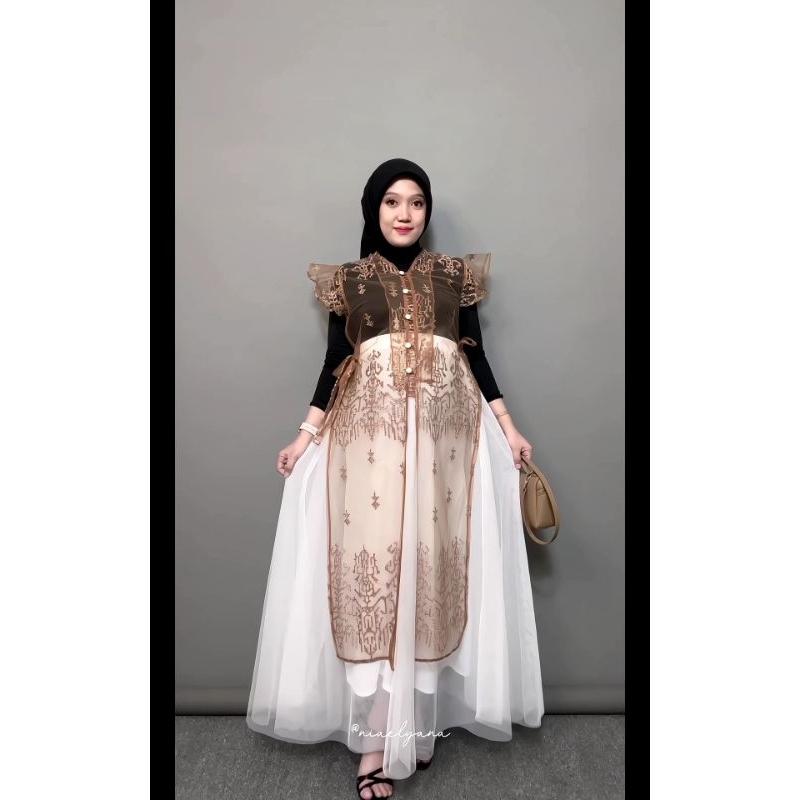 PROMO Voce Outer Tunik Tille Brukat Lace Outer Cardigan Tille Brokat Lengan Panjang Kebaya Tunik atasan wanita outher br