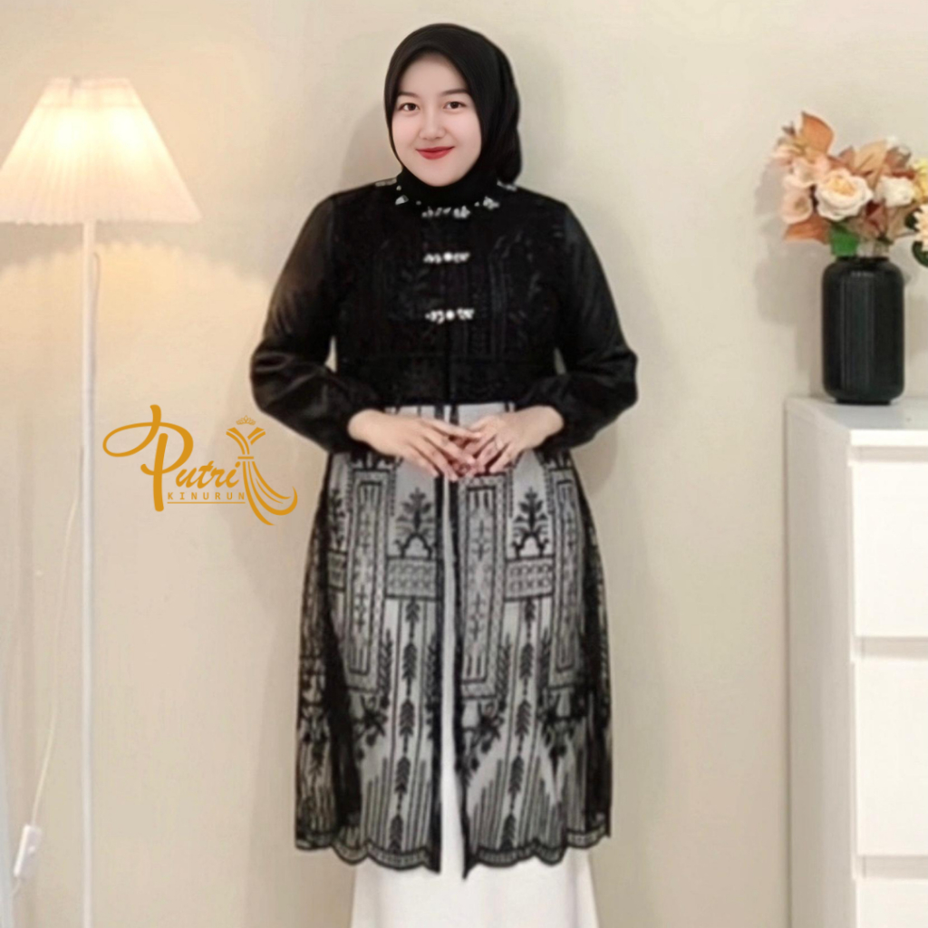 PROMO Mawar Outer Tunik Wanita Cardigan Brokat Brukat Kondangan Wisuda Mewah Kekinian Lengan Panjang