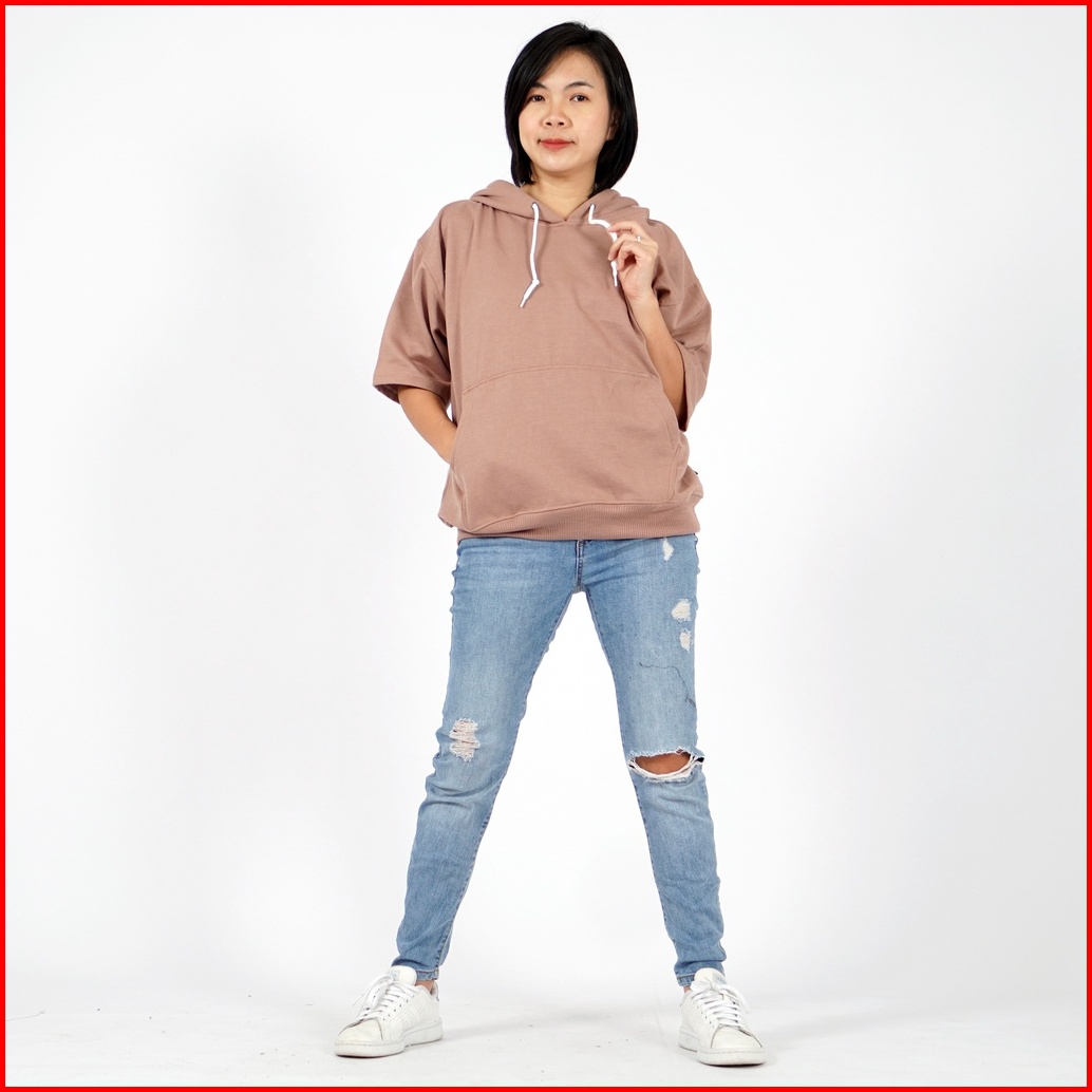 Okechuku Richa Top Hoodie Lengan Pendek Wanita Sweater Hoodie Short Sleeve