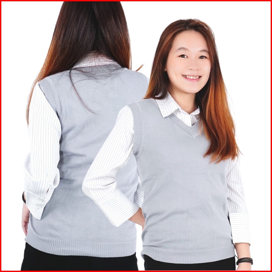 Okechuku Rompi Rajut Wanita Model Polos V Neck Knit Vest Rompi Seragam Sekolah