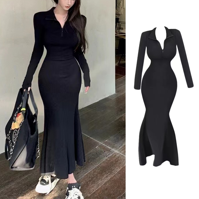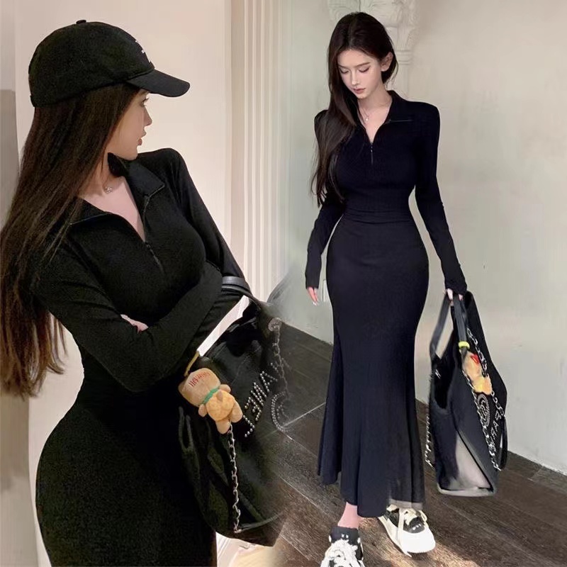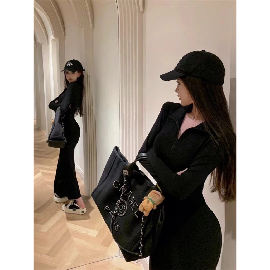 ✅ STOCK rok korean style dress hitam dress v neck dress wanita long dress wanita