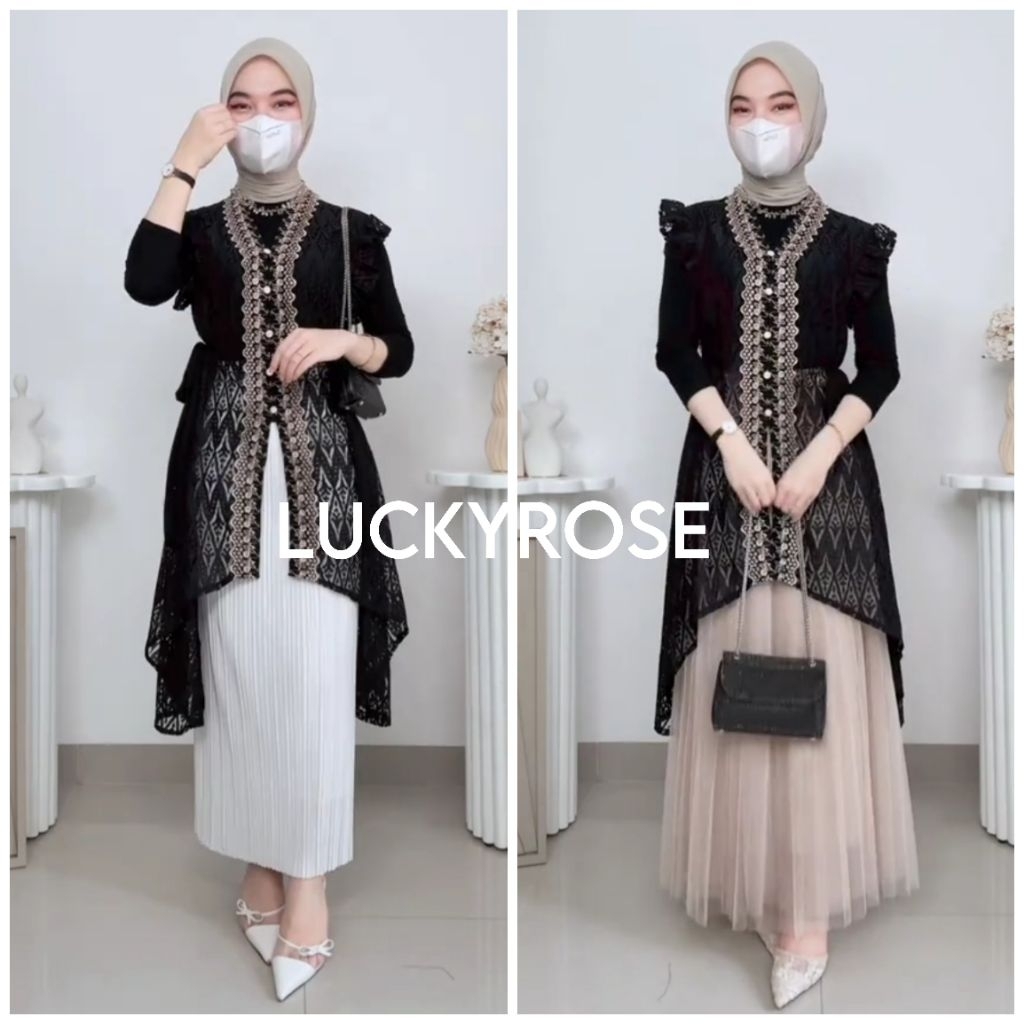 PROMO Poya Outer Brukat Cardigan Brokat Lengan Pendek Ruffle atasan outher brukat Outer Brokat Kondangan Lebaran Outer B