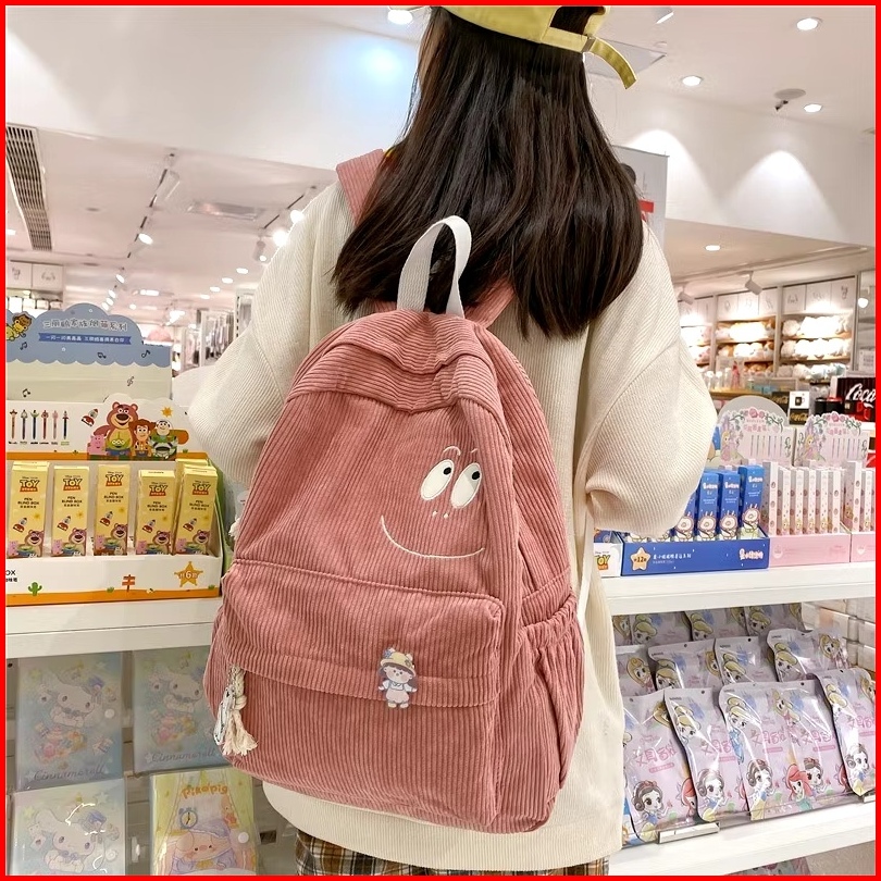 Tas Ransel Corduroy Muka Senyum Tas Sekolah Cewe Smiley Face Backpack Korduroi Perempuan Korean Style