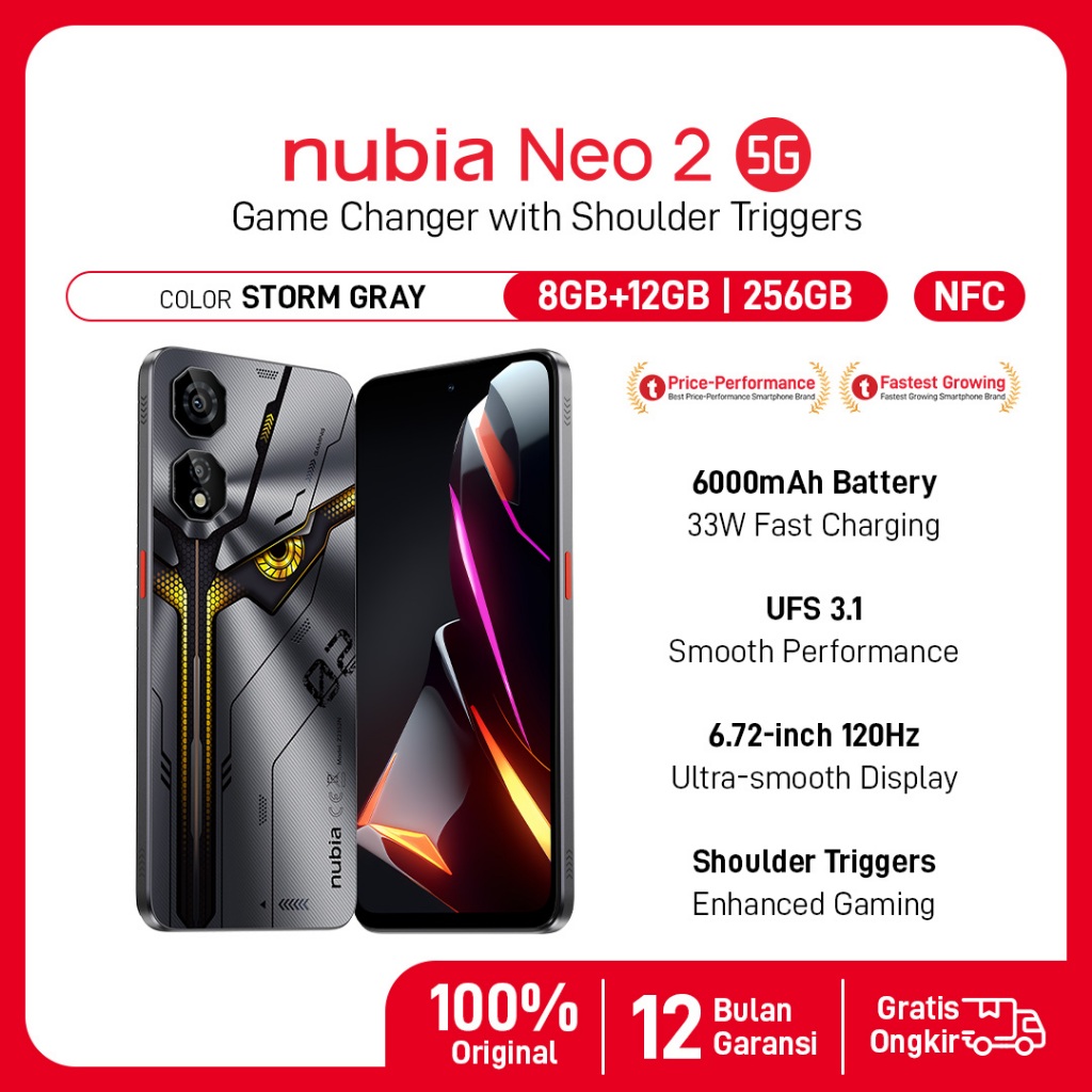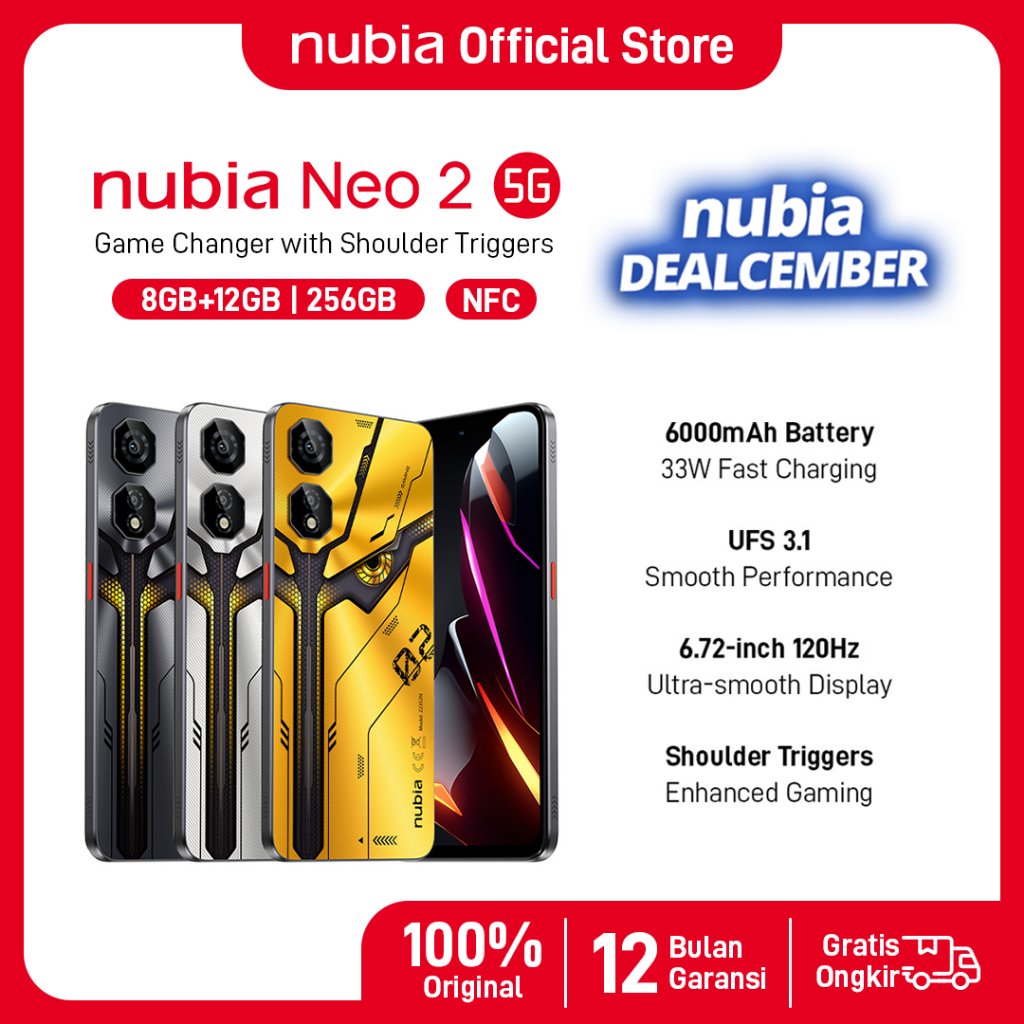 hp nubia neo 2 5g nfc ram 8gb+rom 256gb 6.000 ma garansi resmi